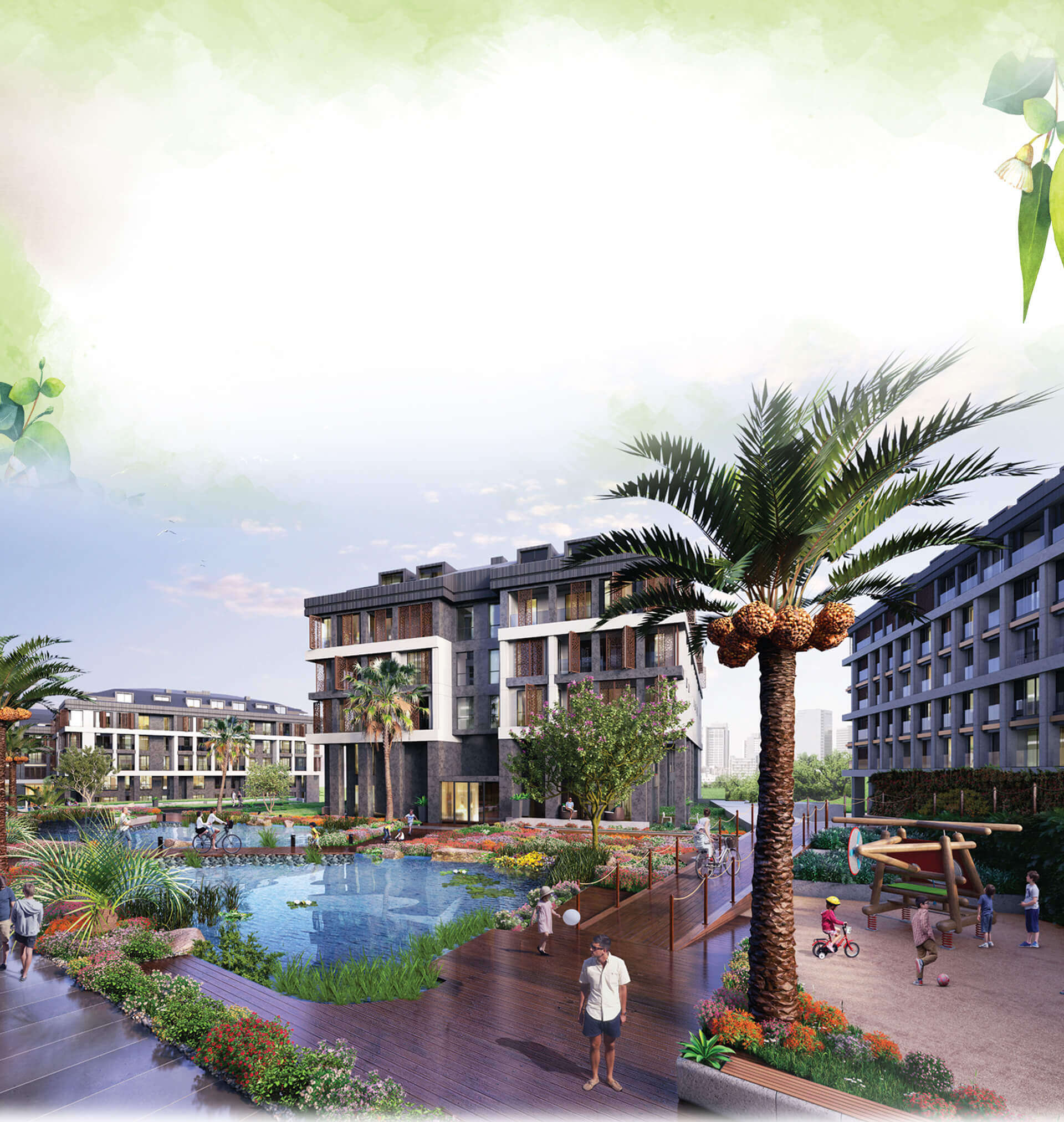 Yeşile daha çok yer ayrılan peyzajı ve ayrıcalıklı sportif alanları, hem sağlıklı hem de zinde bir yaşam sunuyor.